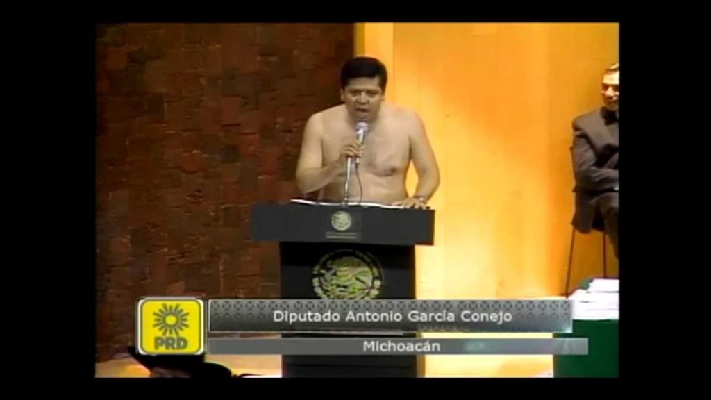 De ahí y como en todas las sesiones de la LXII Legislatura, donde se aprobaron reformas sumamente importantes para el país, vinieron las reservas, las cuales como siempre eran más de cien. También se esperaba que fueran tan monótonas como siempre, con una izquierda que en ese entonces proponía el debate y una derecha que no lo aceptaba nunca; sin embargo, el color lo puso el diputado michoacano Antonio García Conejo, quien pasadas las 2:30 de la mañana se despojó de sus ropas hasta quedar en calzones, mientras expresaba su reserva en tribuna, argumentando que la derecha “así ha despojado a la Nación”.